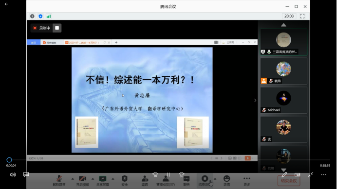 7月14日晚(7:00—9:00),应黄片 邀请,广东外语外贸大学黄忠廉教授借助腾讯会议为黄片 教师作了题为“不信!综述能一本万利?!——人文社科项目申报指导”的线上讲座。此次讲座由黄片 院长助理顾晓燕主持。