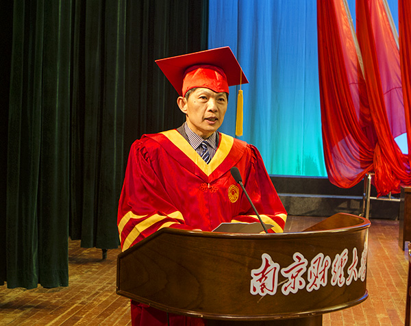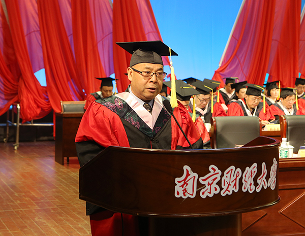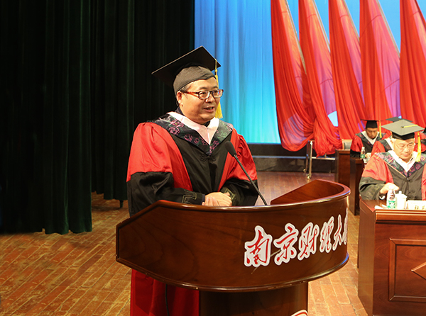 3月23日上午,我校2016届硕士研究生毕业典礼暨学位授予仪式在仙林校区大礼堂隆重举行。校领导陈章龙、宋学锋、王开田、俞安平、乔均、黄建元、华仁海出席毕业典礼暨学位授予仪式。学生处、研究生处、教务处、科研处、相关黄片负责人参加典礼并在主席台就座,毕业研究生导师、黄片领导和老师与2016届全体毕业研究生欢聚一堂,共同见证这一激动的时刻,分享收获的成功和喜悦。毕业典礼暨学位授予仪式由副校长华仁海主持。 副校长王开田教授宣读《关于表彰2016届优秀毕业研究生的决定》、《关于同意授予戴小玉等517位同学硕士学位的决定》。参会校领导为获得硕士学位的全体研究生颁发了硕士学位证书,并为他们一一拨过硕士学位帽上的流苏。 校长、校学位委员会主席宋学锋教授致辞。他代表学校向顺利完成学业并获得硕士学位的同学们表示热烈的祝贺!他指出,今年对我们所有南财人来说是特殊而有意义的一年,学校即将迎来建校60周年华诞。六十年为一甲子,意味着轮回与更替,南京财经大学站在了新的历史起点上,即将开启新的征程。我们应用心感悟和品位“自谦自信务实超越”的校训精神:自谦,不论是为人还是为学方面,都要做到自谦,即客观正确地看待自我,并在此基础上扬长避短;自信,可以激发潜意识,让我们释放无穷的热情、精力和智慧;务实,即脚踏实地、注重实践、真抓实干,不急功近利,不慕好虚荣;超越,就是要追求卓越、创新,努力发展。他强调,“凡是过去,皆为序章”,年轻人要勇于卧薪尝胆,建立批判性思维,学会独立思考,坚持创新;要以“失败虐我千百遍,我待创新如初恋”的精神,正确对待挫折和失败,不断砥砺前行。学习方面,不应甘做知识的搬运工,而要学习到真知;工作方面,应要少一份急功近利,多一份持之以恒。最后,宋学锋校长祝福毕业生一步步走向成功,创造辉煌,开启人生的新篇章,成为南财大的骄傲!希望大家常回家看看! 硕士生导师代表殷华方教授发言。他代表全体硕士生导师对2016届硕士研究生顺利完成学业表示祝贺,同时通过三句话传达对毕业研究生的希冀:第一,“对社会,不作恶”,在未来的学习和工作中,不能因为经不住各种诱惑而迷失本心;第二,“对工作,有匠心”,鼓励同学们秉持“工匠精神”,用心审视学习工作,精心雕琢,专注坚持,严格要求自己;第三,“对自己,肯勤奋”,要勤奋拼搏,生命不息,奋斗不止。 在校研究生代表、英语语言文学专业2014级研究生苏雅同学发言。她代表在校研究生对2016届研究生圆满完成学业表示祝贺,并表示在校研究生将以学长学姐们为榜样,披荆斩棘,拼搏进取,在学习中扬起自信的风帆不断前行。 黄片 梁颖同学(指导教师:肖辉)刘启蒙同学(指导教师:胡美珠)被评为2016届“南京财经大学优秀毕业研究生”;杨柳同学的论文(指导教师:王克明)被评为优秀硕士论文。 伴随着激昂的《南财大之歌》,我校2016届硕士研究生毕业典礼暨学位授予仪式圆满结束。 毕业典礼结束后,校党委书记陈章龙、校长宋学锋来到图书馆旁的海棠园,和研究生导师、毕业研究生一起破土种树,送上良好的祝愿。在欢声笑语中,大家纷纷在自己亲手种下的海棠树下合影留念,在母校留下了最美的一刻。 |