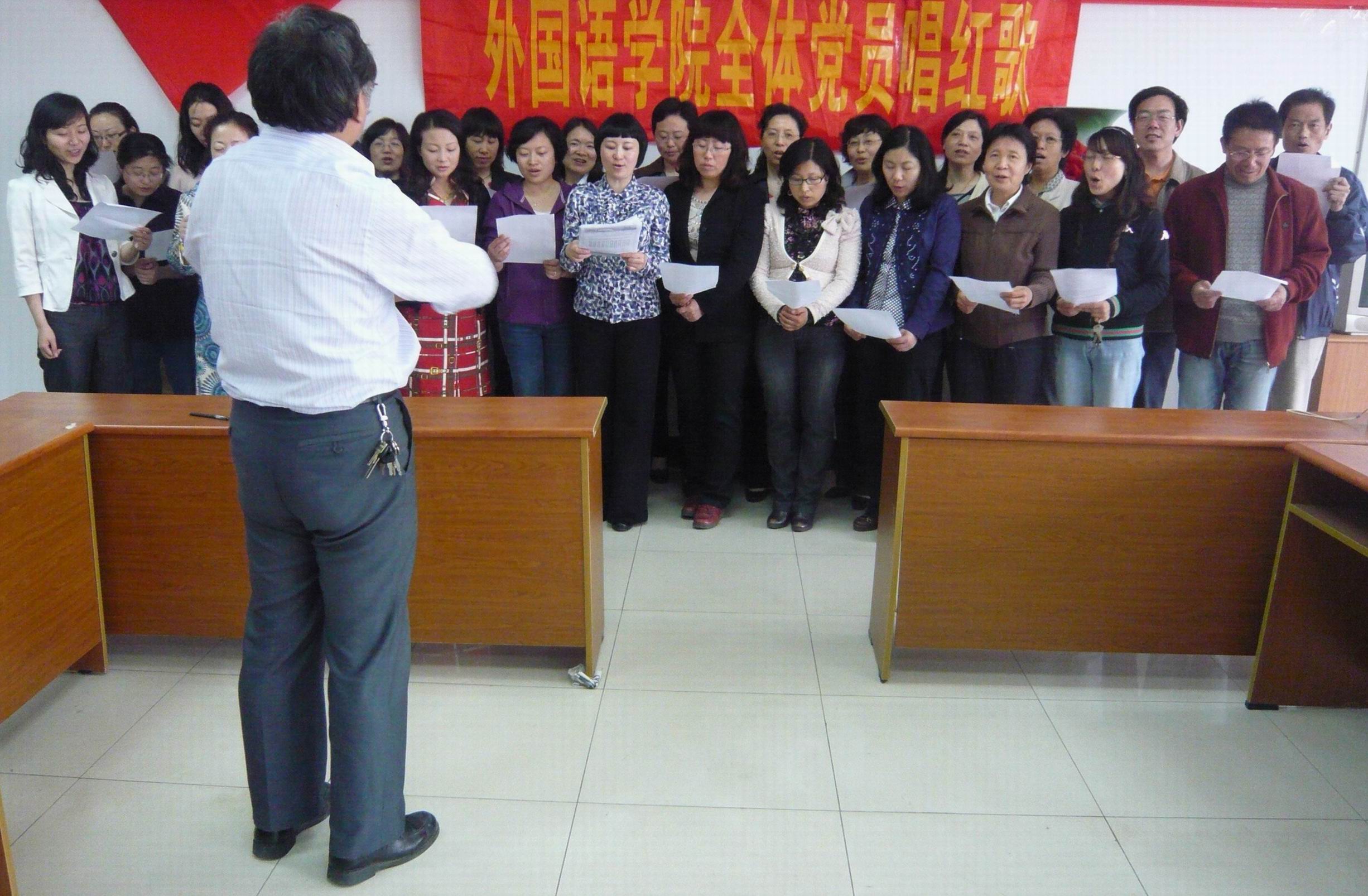 为了再度热烈庆祝中国共产党成立90周年,黄片 全体教职工党员在院长王克明教授的指挥下高唱《没有共产党就没有新中国》、《走进新时代》等歌曲。黄片 党员们以唱红歌的形式再一次表达了对党的无比崇敬和热爱之心,这同时也是黄片 全体教职工党员献给党90周岁的一份特殊礼物。