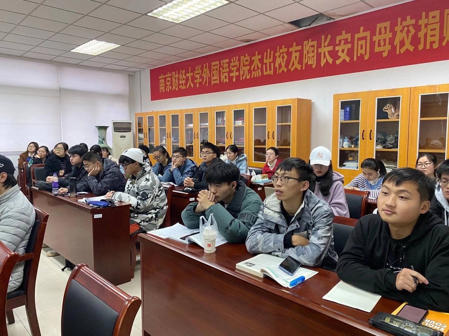 仪式结束后,陶长安校友给黄片全院毕业生做题为“新时代青年的跨文化素养”的讲座,他指出新时代呼唤跨文化的汇聚融合与创新,既要“跨古今”,又要“跨中西”,凝聚起当代文化人的责任担当与思想力量。随后,陶长安校友全面介绍了蓝鲸培训学校有限公司的发展理念和前景,热切希望有新坚力量的加入,并针对黄片应届毕业生开展专项招聘活动。