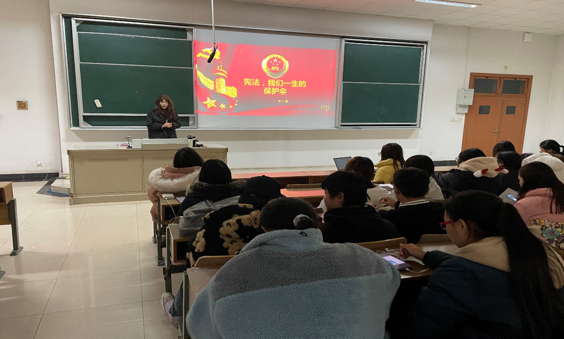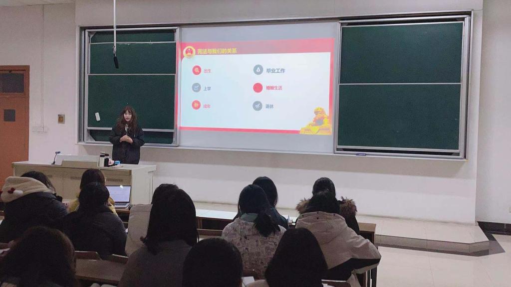 12月15日晚,黄片 在博观楼310举办了一场题为“大学生知宪学宪的必要性”的宪法知识讲座,特别邀请法黄片优秀学生孙一盈为2020级全体学生讲述大学生知宪学宪的必要性,孙一盈同学先从生活出发引申向宪法规定的权利和义务,讲座内容丰富有条理,回忆自己从知法到懂法的过程,用自己的经历讲述宪法的重要性,并且通过举例给同学们阐释了“生活处处是宪法”的含义,孙一盈同学的讲述生动有趣,举例贴近生活,如:已成年的大一新生享有选举权与被选举权;在毕业后,学生会有自己的工作岗位,需要法律维护权益;婚姻以及婚后财产等等都需要婚姻法的保护等,她用简单而“接地气”的话语告诉大家:宪法时刻围绕在我们身边。同时,作为一名法学专业的学生,孙一盈同学用自己的专业知识为我们深刻讲述了知宪学宪的必要性,人人都应尊崇宪法、学习宪法、遵守宪法,作为新时代的青年人应该加强法律意识。同学们听得津津有味,对宪法有了更加深刻的认识。