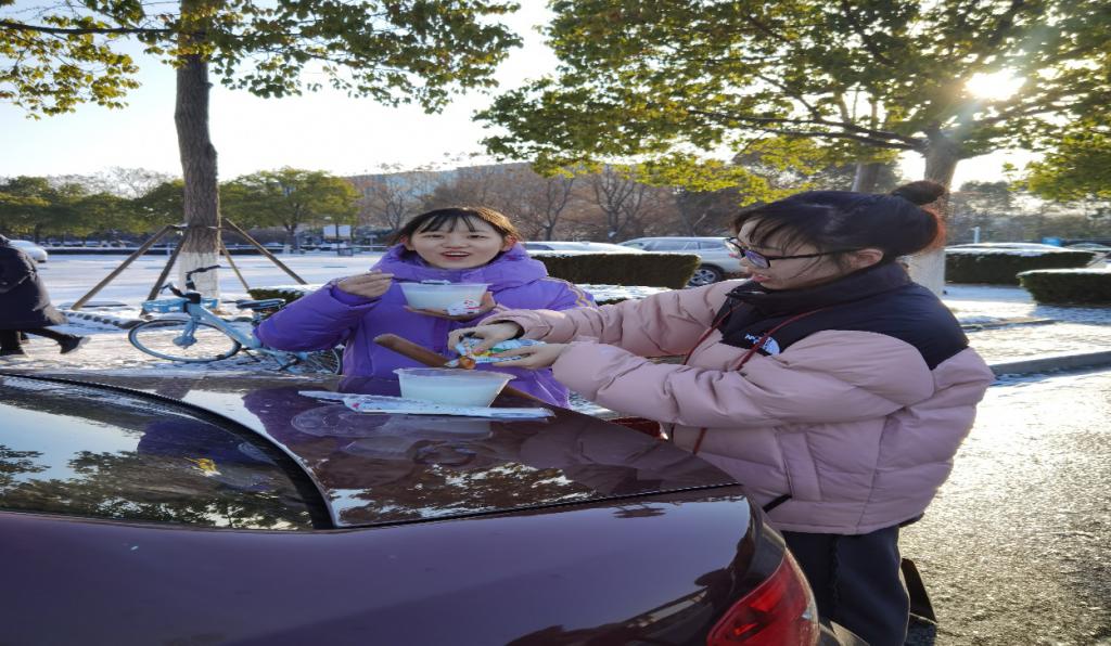 “唰唰唰……唰唰唰……”由于早晨天气寒冷,冰雪坚硬,地面湿滑,清雪进度十分缓慢,志愿者们频繁地摔倒,又坚强地站起来继续铲,校团委书记徐刚在前面用铁锹铲除积雪,奋力铲冰,学生党员们在后面用扫帚奋力清扫雪沫冰渣,一派忙碌景象。铲雪是个体力活,年轻的学生党员们铲起雪来却毫不逊色。看到学校发起的铲雪志愿服务后,小太阳本科生支部的党员们毫不犹豫的都报了名。英语1801班的学生党员梁冉说:积雪虽多,却抵挡不住小太阳志愿者的温暖举动,作为一名学生党员,她觉得自己应该站在志愿队伍的前面,勇于奉献,用自己的实际行动号召更多地人来铲除积雪,确保师生的出行方便。