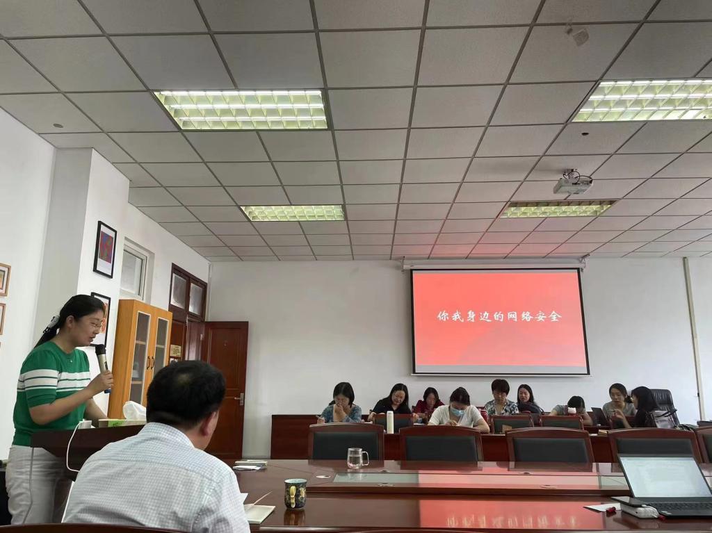 活动主要围绕“网络安全特征”、“网络安全法律”、“网络安全防护措施”三个部分展开。刘英华副书记详细介绍了网络安全的主要特征和主要法律,引用最近发生的几起高校网络诈骗案例让师生们更好地了解和感知身边的网络安全风险。最后,全体师生共同观看了国家网络安全宣传周的教育视频,并交流了心得体会。