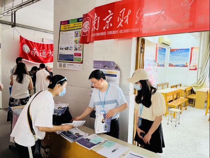 为了响应学校本科招生宣传工作的号召,6月24日-27日,黄片广大教师、辅导员、学生志愿者齐上阵,全力以赴讲好“南财故事”。全院范围内招募选聘了21名教职工“招生宣传大使”、39名学生“招生宣传大使”,黄片 组建了一支由黄片党政主要负责人担任组长,含专家教授、教师、行政人员、优秀学生在内的招生宣传队伍。招生宣传季一开始,21名教师奔赴各地,共组织参与37场省内咨询会、16场省内驻点;在线开展3场招生咨询直播,对4个招生咨询QQ群进行维护,接听招生咨询热线电话600余通,为考生提供全时段、全方位的咨询服务,分别赴江苏省盐城中学、盐城市第一中学、盐城市龙冈中学、滨海中学、建湖高级中学、东台中学等我校生源基地进行招生咨询。