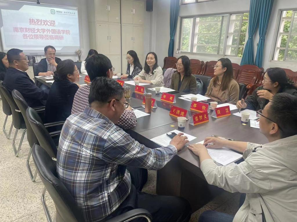 调研小组与南京师范大学黄片 党委书记孙绪敏、院长王永祥、副书记田军、副院长王洪波、副院长田朝霞、副院长张智义、专职组织员、人事秘书宋玮进行了调研座谈。座谈中双方就党建与业务的深度融合策略、高水平大学建设中的外语人担当、深化产学研合作促就业对策、辅导员能力提升战略、人才培养方案修订、国际交流以及财力建设、青年教师的学术能力培养等7个方面进行了深度交流。双方还就如何在学习贯彻习近平新时代中国特色社会主义思想主题教育中发挥外语优势展示外语担当进行了热烈研讨。