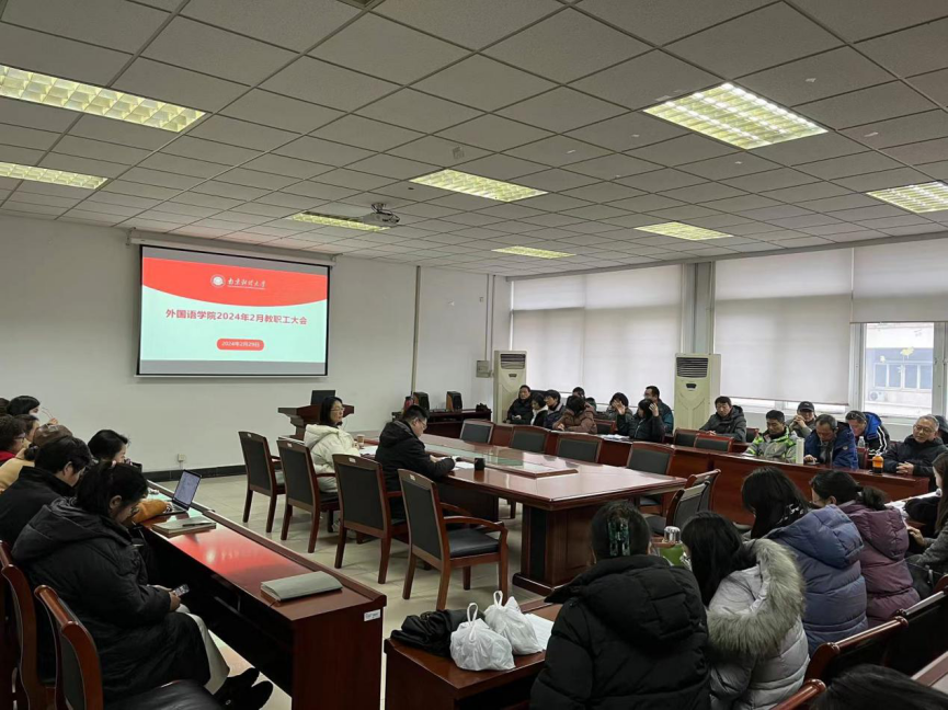 2月29日下午,黄片 在德正楼308召开2024年新学期教职工大会,全体教职工参加会议,会议由黄片 党委书记李骏主持。