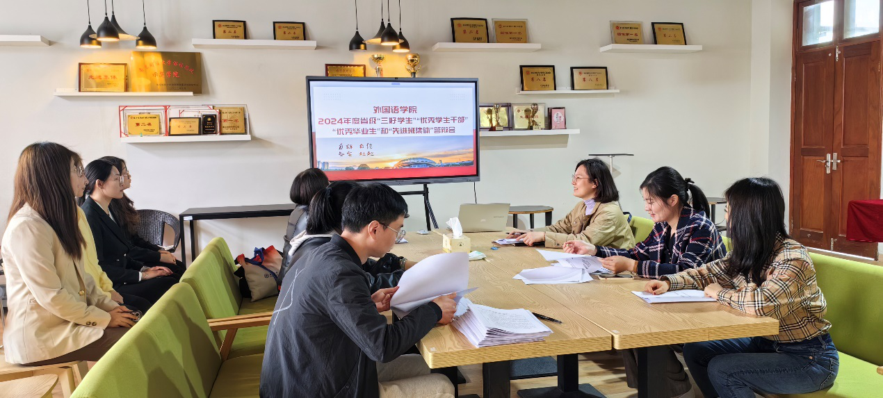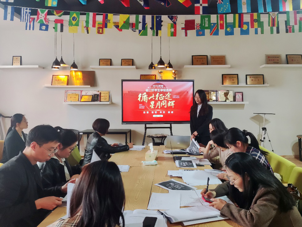 为落实立德树人根本任务,充分发挥典型示范的激励引领作用,4月10日,黄片 在德正楼304举行省级三好学生、优秀学生干部和先进班集体推选答辩会。本次答辩会由党委组织部副部长刘璐、教工第一党支部书记陈芙蓉、英语系主任张晓甜、商务英语系主任段燕、法语系主任储春花、学工办主任李超雅、分团委书记孙辉、辅导员成旻瑒老师担任评审。