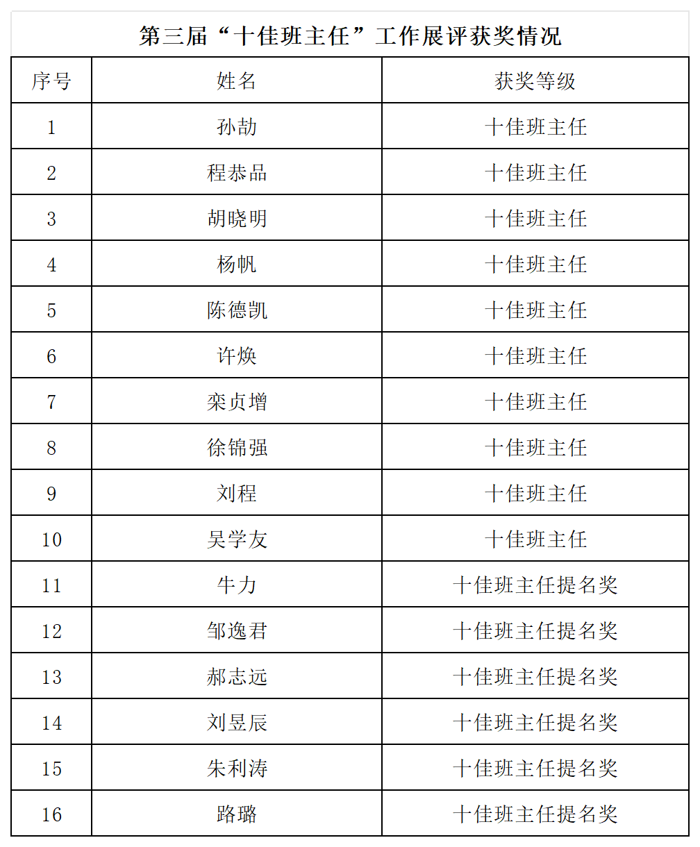本次展评活动自10月底启动。经个人申报、黄片推选、学校初评等环节,全校共有16位班主任脱颖而出,进入现场展评。展评会上,老师们围绕学生思想政治教育引领、专业理论学习与实践指导、综合素质培育与全面发展、特色班级建设与成效等方面进行汇报。他们或以“三位一体”帮扶促学业、创新班委管理模式激活力,或借竞赛实践练本领、融“思政+专业”育根基,兼顾劳动教育与心理关怀,用真挚情感、生动案例与扎实成效,生动诠释了我校班主任为党育人、为国育才的初心使命与“启智润心、育人为本”的教育追求。经评审,法黄片孙劼等10位老师获评第三届“十佳班主任”。