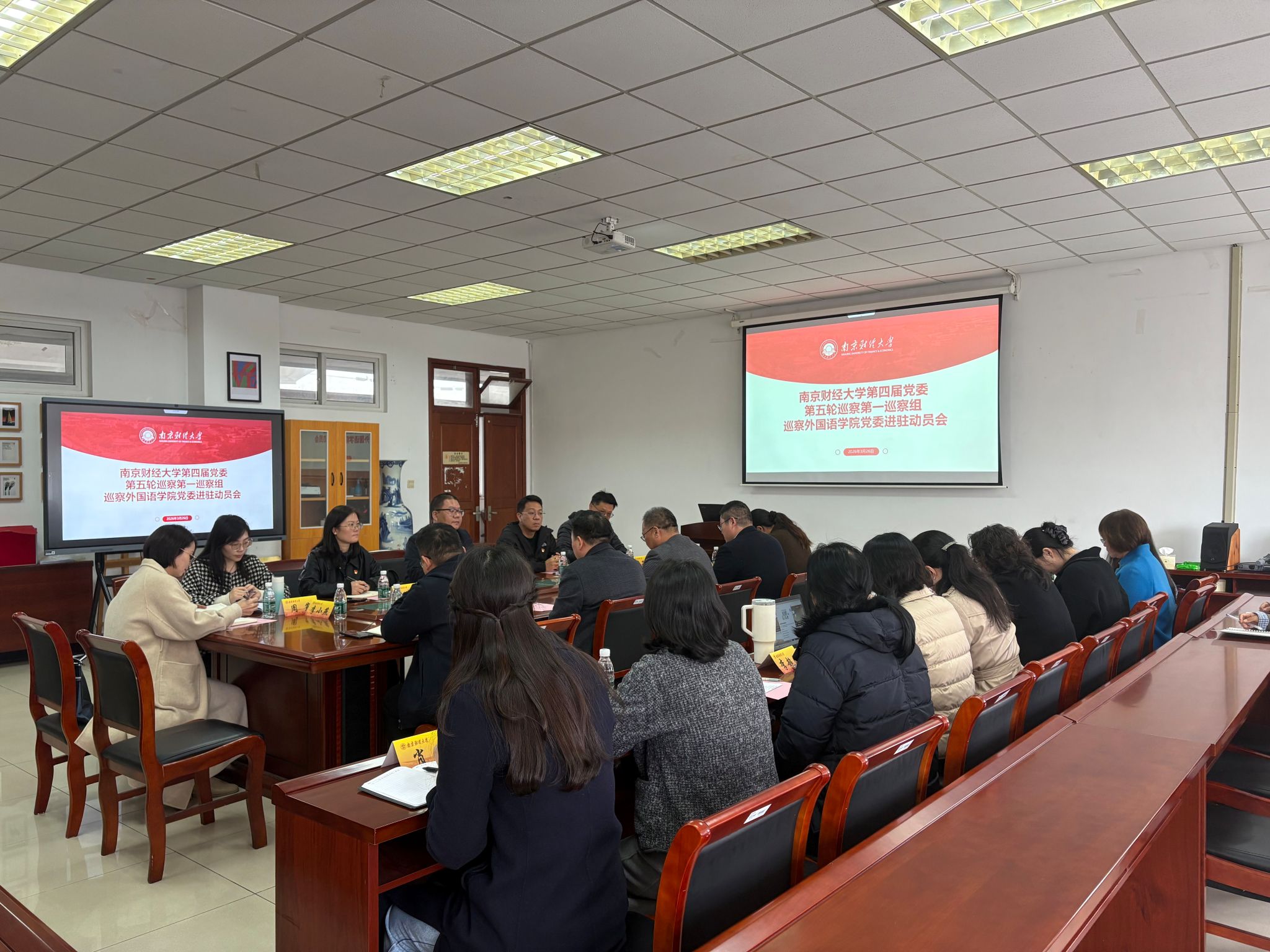 校党委第一巡察组组长王孝晨通报巡察工作计划和要求,说明巡察工作目的和任务、巡察纪律以及相关配合保障工作要求。王孝晨书记就开展好本轮巡察工作提出三点要求:一是提高政治站位,强化对校内巡察工作重要意义的认识;二是明确任务,聚焦重点,高质量完成本次巡察任务;三是强化政治担当,齐心协力完成好巡察工作。