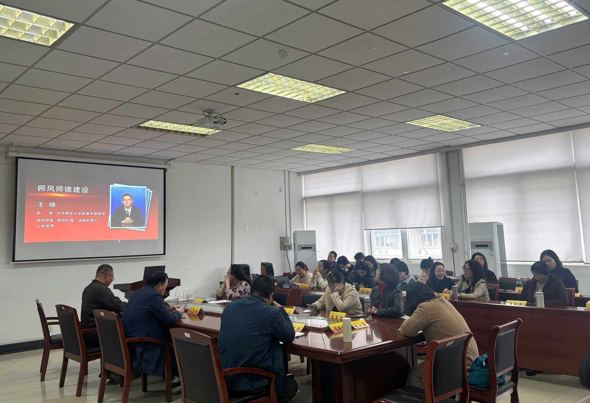 接着,陆斌书记宣贯师德师风教育学习相关文件要求,并通报了黄片近期推进师德师风教育学习的措施。他指出,要聚集一线教师立德树人实践,重点树立爱岗敬业潜心治学的从教典型;讲好关爱学生暖心陪伴的育人故事;培育担当奉献守正创新的先锋人物。全体与会教师共同收看了由北京师范大学教育学部王啸教授主讲的《师德师风建设之教师关怀》专题视频。通过学习,大家进一步明确了教书育人是教师的天职,教师本身是最重要的教育资源;教师尊严、教师公正、教师关怀相互支撑,形成了相对完整的师风师德建设的架构。