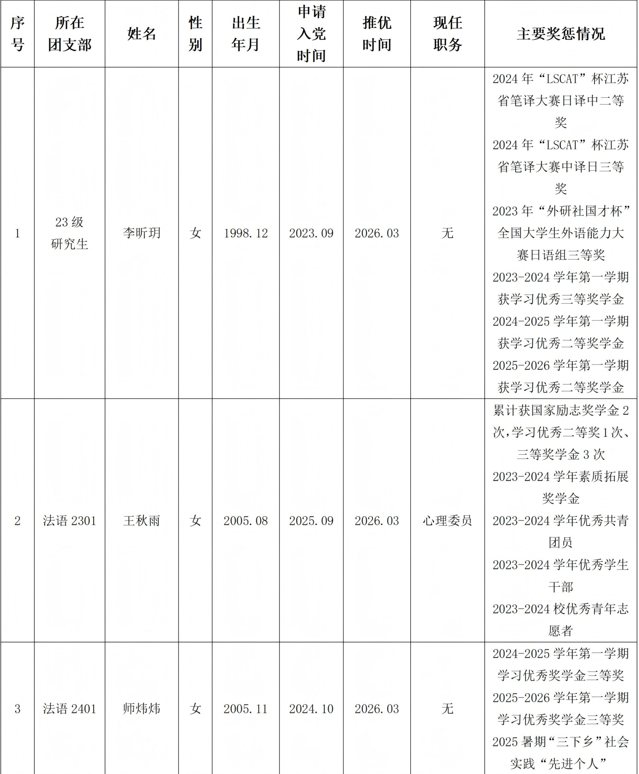 为了广泛听取群众意见,接受群众的监督,现予以公示,公示时间为2026年3月23日-2026年3月27日,公示期间内如有疑议可向黄片分团委反映,联系电话:025-86718378。