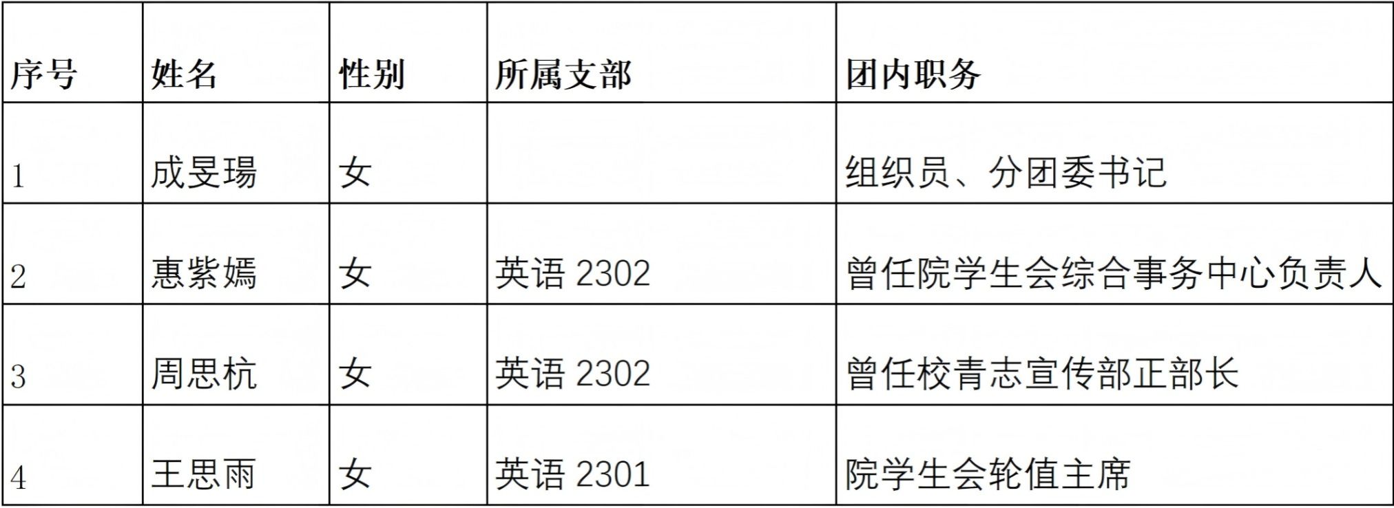 2026年黄片 “优秀共青团干部”拟推荐名单(排名不分先后)