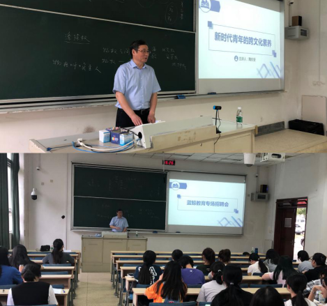 仪式结束后,陶长安校友给黄片全院毕业生做题为“新时代青年的跨文化素养”的讲座,他指出新时代呼唤跨文化的汇聚融合与创新,既要“跨古今”,又要“跨中西”,凝聚起当代文化人的责任担当与思想力量。随后,陶长安校友全面介绍了蓝鲸培训学校有限公司的发展理念和前景,热切希望有新坚力量的加入,并针对黄片应届毕业生开展专项招聘活动。