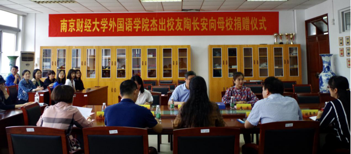 9月29日,黄片 与蓝鲸培训学校有限公司南京分公司捐赠仪式在德正楼308会议室举行。蓝鲸培训学校有限公司南京分公司董事长陶长安、市场部主管黄洁、口语口译项目主管林柏艳,我校对外联络处副处长裴银伟出席签约仪式。院党委书记李骏、院长孙勇彬、研究生秘书程艳秋及黄片全体研究生参加了仪式。捐赠仪式由党委副书记刘英华主持。