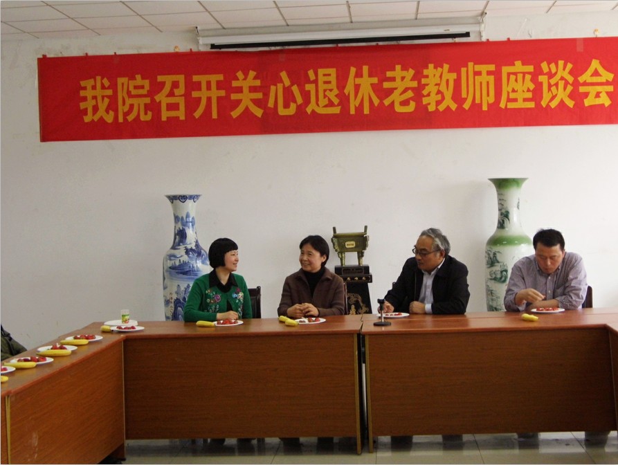 为了进一步贯彻落实省关工委一系列文件精神,不断提高关工委工作水平,进一步深入推进关工委常态化建设,紧密结合学校中心工作,黄片 于2013年4月26日召开了关心退休老教师座谈会,参加会议的有黄片 退休老教师王展老师、黄片 全体党政领导班子、黄片 关工委成员以及部分教师代表。会议由黄片 关工委主任、党总支书记肖辉教授主持。