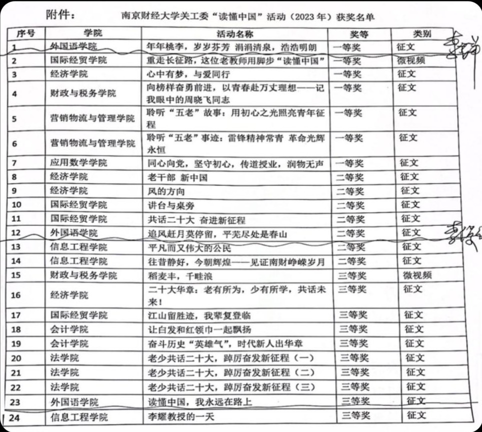 此外,在江苏省教育系统关工委举办的“读懂中国”征文活动中,黄片 叶子欣、吉柏衡两名同学采访撰写的《年年桃李,岁岁芬芳涓涓清泉,浩浩明朗——记黄片 李群老师》、朱秋燃、陈典两名同学采访撰写的《追风赶月莫停留,平芜尽处是春山——记南京财经大学黄片 退休教师李俊儒教授》两篇征文分别获学校一、二等奖,《读懂中国,我永远在路上》获三等奖。