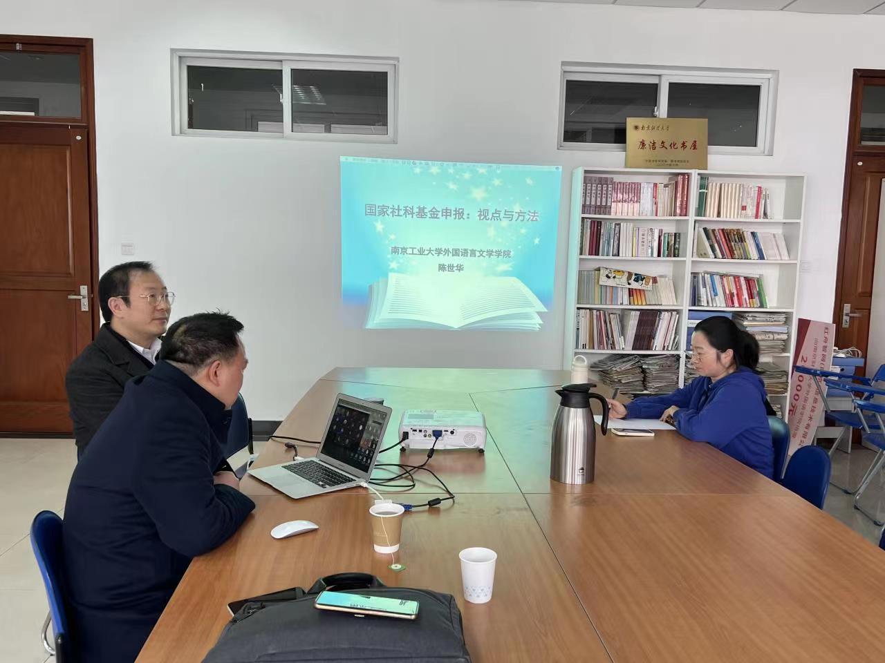 2022年12月13日下午,应黄片 邀请,南京工业大学黄片 院长陈世华教授为黄片 师生做了题为“国家社科申报:观点与方法”的学术讲座,并对日语专业青年教师的国社科申报工作进行了指导。黄片 部分师生在德正楼325参与线下的讲座,部分通过腾讯会议在线参加此次讲座。讲座由孙勇彬院长主持。