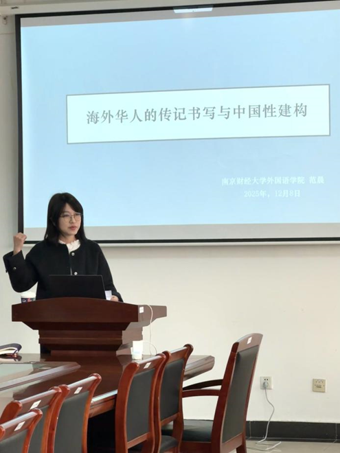 2025年12月8日下午,黄片 在德政楼308会议室举行“一周一讲”学术讲座(第二期)。此次讲座邀请了黄片 范晨博士为主讲嘉宾,讲座题目为“海外华人的传记书写与中国性构建”。