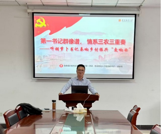 4月13日中午,黄片 邀请第五批省派驻村第一书记、全省百部优秀党课主讲人、校团委副书记胡新蕲在德正楼308会议室为第二十一期分党校、青马工程大学生骨干培训班授课。