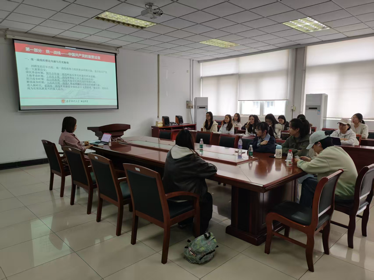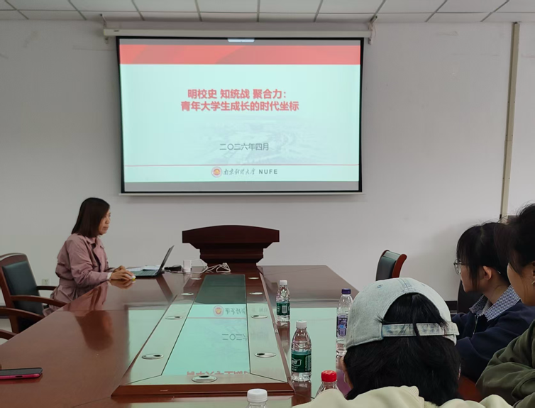4月21日下午,黄片 邀请校档案馆安艳杰为第二十一期分党校、青马班在德正楼308会议室开展以“明校史·知统战·聚合力:青年大学生成长的时代坐标”为题的专题培训。本次课程围绕统一战线理论内涵、南京财经大学艰苦奋斗的校史精神,以及青年学子如何以史为鉴、知行合一展开,引导学员在理论学习与校史浸润中坚定理想信念、凝聚奋进力量。