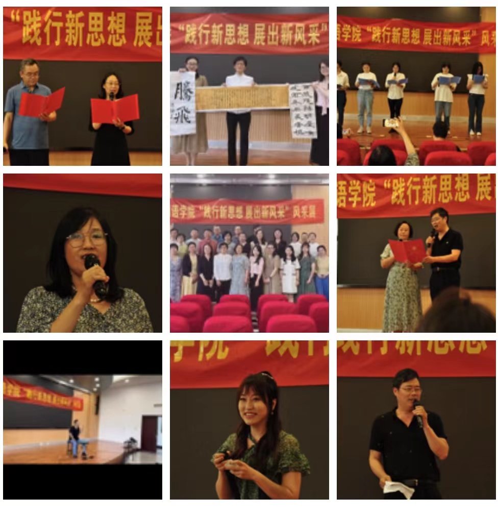 参演人员精神饱满,充满青春与活力,朗诵环节,邵欣欣的诗歌朗诵《不忘初心》,铿锵有力、鼓舞人心;张高远的双语诗歌朗诵《雪夜林畔小驻》,为大家绘制出一幅美丽动人的冬日树林雪景图;游思淳,李丽萍的散文诗歌朗诵《归国》,表达了师生对民族复兴盛世蓝图的憧憬与向往;洪忠婷、齐梦菲等师生的日语诗歌朗诵《不畏风雨》,声情并茂、娓娓道来;李骏、高盛强带来的诗歌朗诵《我的南方和北方》,饱含深情地抒发了对祖国的依恋,激发青年的家国情怀,展现出外院师生意气风发走在大路上的喜悦与豪迈。老师们还带给师生们别样的惊喜,张玉英、张建红、韩静带来的书法临摹展示,让大家共同领略中华民族传统文化的魅力;叶家泉的空灵鼓独奏《云水禅心》又将观众们带入艺术的殿堂,一起去做庄子笔下的逍遥游,去做林逋诗中的隐逸者。