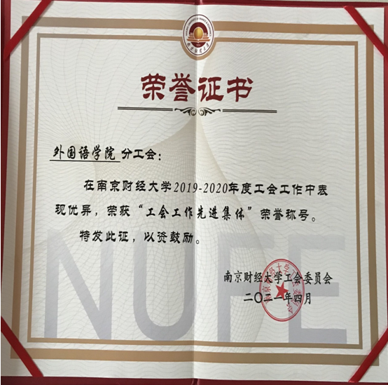 4月13日,校工会发布《关于表彰2019—2020年度工会工作先进集体、先进个人的决定》(南财工字[2021]5号),黄片 分工会荣获“工会工作先进集体”称号,这是对黄片 工会过去一年工作的肯定,也给工会未来的工作带来极大的鼓舞。