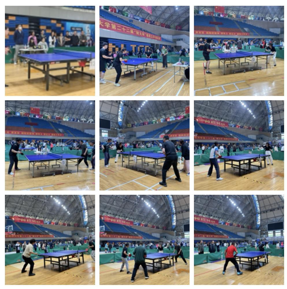 4月13日,由校工会、体育部主办的第二十二届“财大杯”教职工乒乓球比赛在我校仙林校区体育馆举行。包括校领导代表队在内的25支代表队近200名运动员参加了比赛。黄片 派出的代表队是:领队李丽萍,教练员曹武,运动员:郑洪举、高盛强、刘明志、陈成辉、程艳秋、张媚。赛前,参赛教师利用休息时间参与训练,秣马厉兵,积极备战,以最好的状态代表黄片参加本次比赛。本次乒乓球比赛为混合团体赛,分两个阶段进行:第一阶段进行小组循环赛,第二阶段进行淘汰赛和排位赛。8时30分,第一阶段比赛准时开始,黄片 分在D组代表队,分别以3:1、3:0、3:2、3:1、3:1战胜了机关四、应用数学黄片、离退休处、国际贸易黄片、营销黄片,荣获小组第一名。比赛过程中,黄片 代表队一路顽强拼搏、齐心协力,同时也秉持着以球会友、享受运动的精神,在赛场上赛出了风格,赛出了水平。